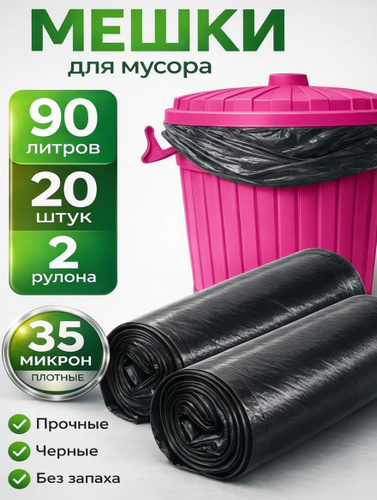 Пакеты для мусора 45 л, мешки для мусора прочные, 20 шт
