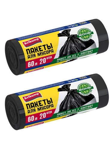 Пакеты для мусора 60л повышенная прочность черные AVIKOMP (2уп по 20шт)
