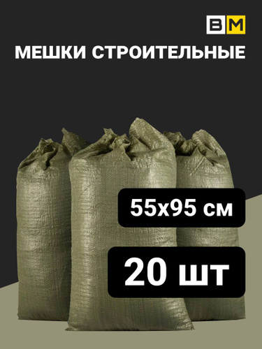 Мешок строительный (зеленый) 55х95 см, 70 л, мешок для мусора,20шт
