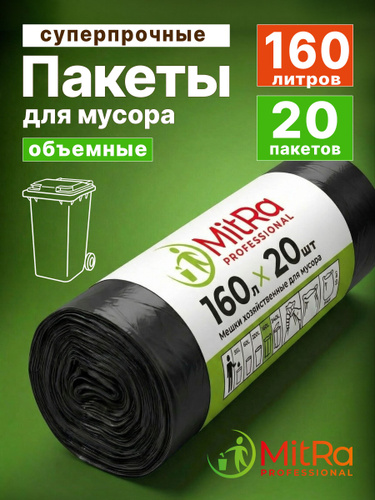 Пакеты для мусора 160л, 20шт, мешки для мусора КРЕПКИЕ, MITRA PROFESSIONAL