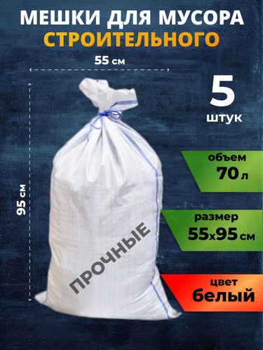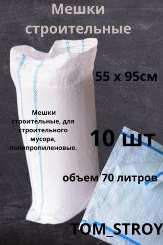 Мешки для строительного мусора, 55*95, 70л, белые 10шт