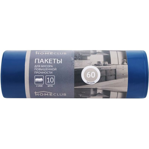 Пакеты для мусора Homeclub двухслойные повышенное прочности синие 60 л 10 шт