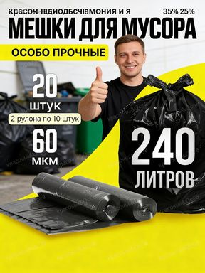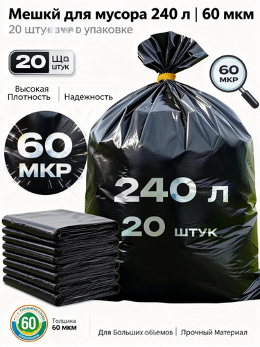 Мешки для мусора 240 л, 60мкм, 20 шт