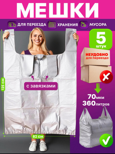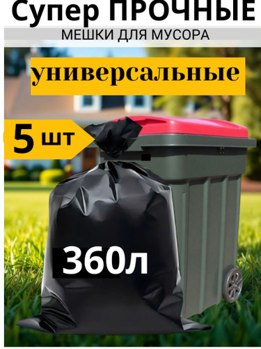 Мешки для мусора 360 л прочные плотные 5 шт., мешки для строительного мусора,для хранения, для переезда