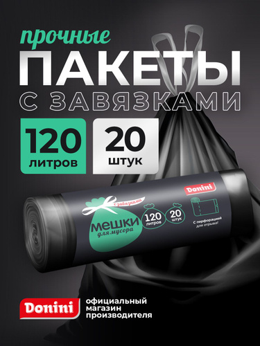 Пакеты для мусора с завязками 120 л 20 штук черные мешки