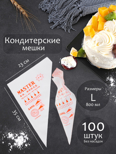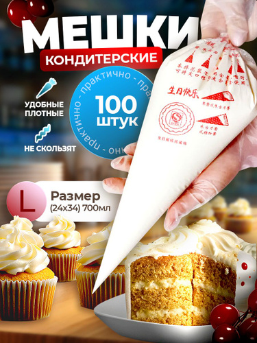 Одноразовый кондитерский мешок, L, 100 шт