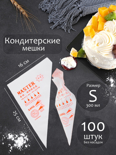 Одноразовый кондитерский мешок, S, 100 шт