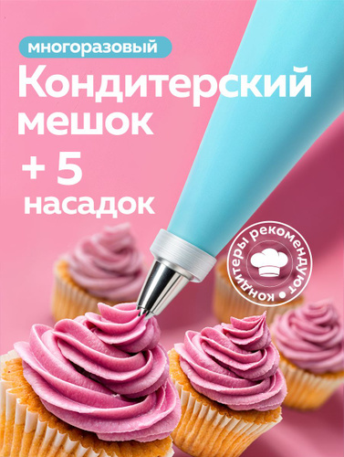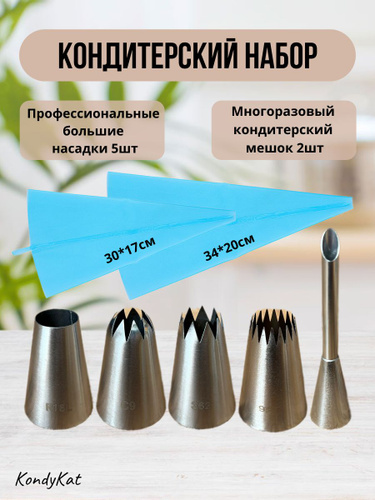 Кондитерский мешок с насадками многоразовый 2шт, кондитерские насадки 5шт, KondyKat