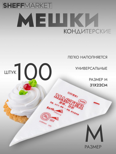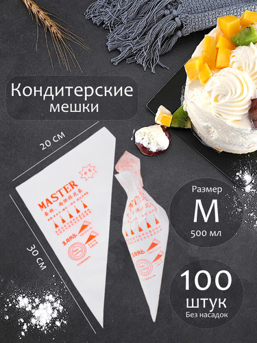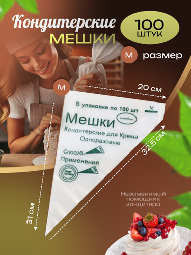 Мешок кондитерский одноразовый, пакет кондитерский, 100 шт в упаковке, M размер