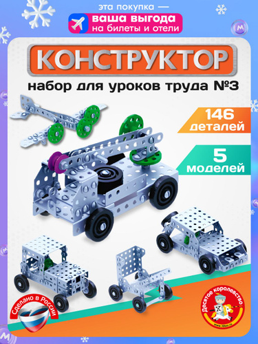 Конструктор металлический "10К" для уроков труда №3 146 элементов Десятое королевство