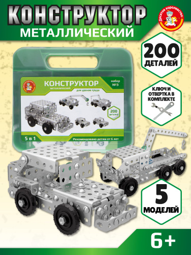 Конструктор металлический для уроков труда 5 в 1 №3 в пластиковом чемоданчике Десятое королевство