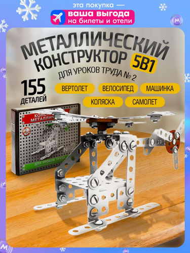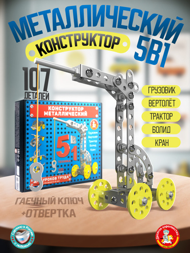 Металлический конструктор для уроков труда 139 деталей, 5 вариантов сборки, железный конструктор для мальчиков и девочек
