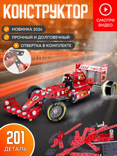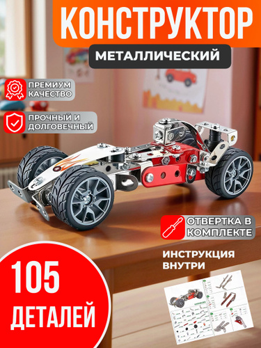Конструктор металлический развивающий для детей в школу для уроков труда гоночная машина