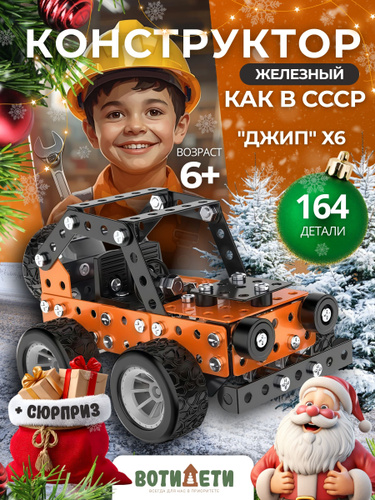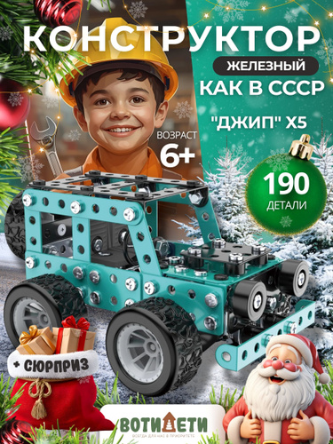 Конструктор для мальчика металлический Машина Внедорожник 190 деталей