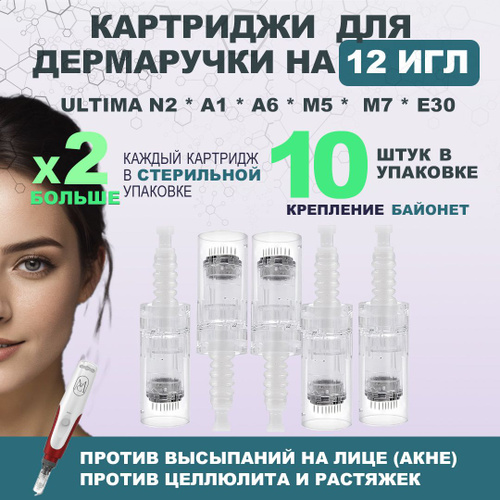 MARRYMe Картриджи для дермаручки на 12 игл / сменные иглы для дермаручки/ Ultima N2-C, M7, M5, A1, A6, E30/ набор 10 штук