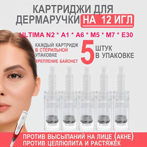 Картриджи для дермаручки на 12 игл / сменные иглы для дермаручки/ Ultima N2-C, M7, M5, A1, A6, E30