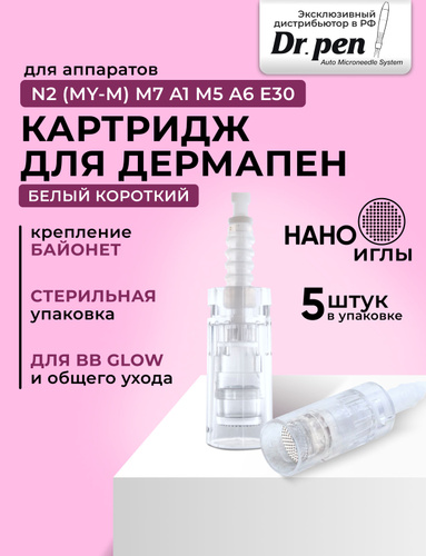 Dr.Pen Картридж для дермапен, мезопен , Bayonet cartridge nano needle (белый), нано иглы, 5 шт.