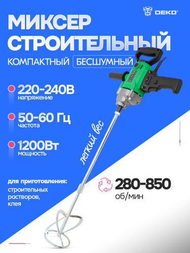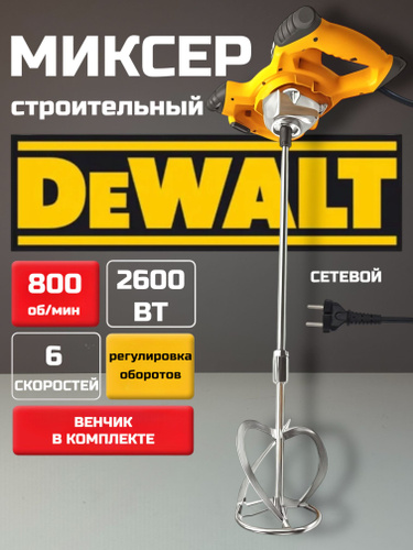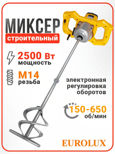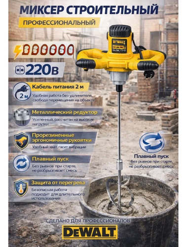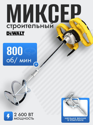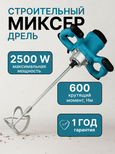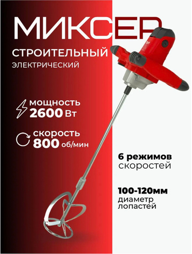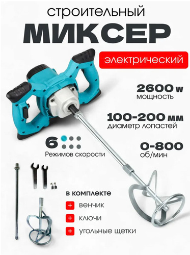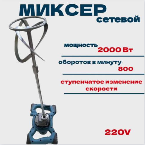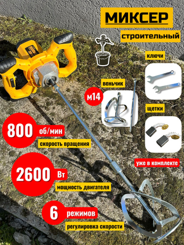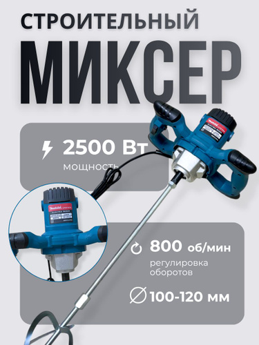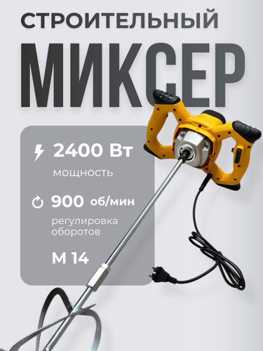 Миксер строительный электрический ручной сетевой 2400 Вт для сухих строительных смесей и бетона