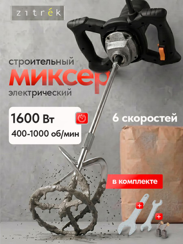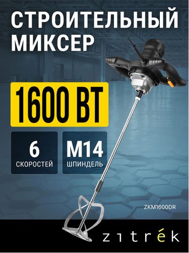 Миксер строительный электрический Zitrek, 1600Вт, 400-1000 об/мин, 6 скоростей ZKM1600DR