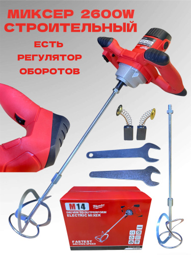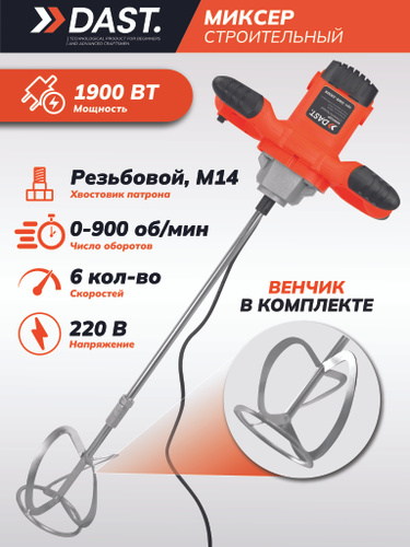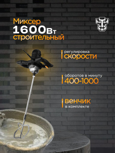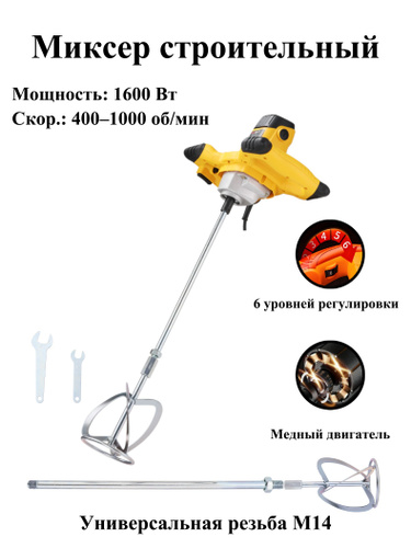 Строительный миксер электрический 1600Вт MANCRAFT с венчиком, 900 об/мин, 6 скоростей, регулировка оборотов