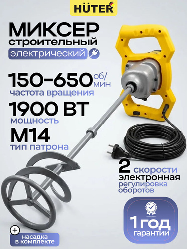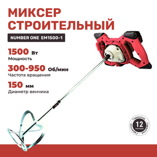 Миксер строительный электрический NUMBER ONE EM1500-1 1500Вт, рег.оборот., венчик М14.