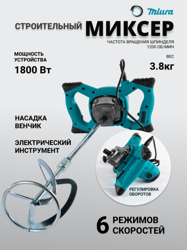 Миксер строительный для замешивания смесей 1800вт Miura UTO1800