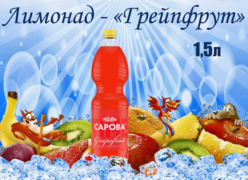 Лимонад Сарова - Грейпфрут 1.5 литра, газ, пэт, 6 шт. в уп.