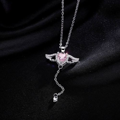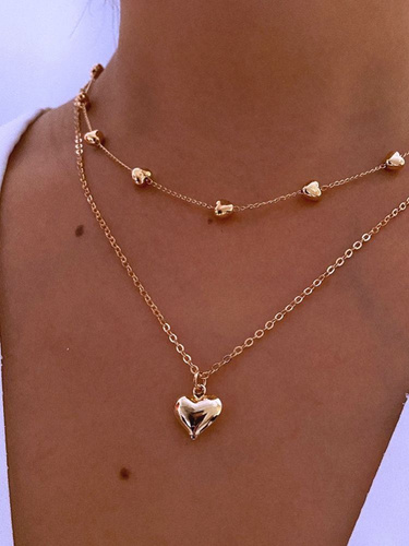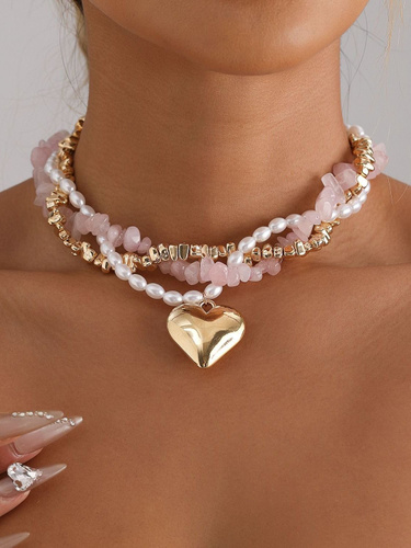 Колье женское бижутерия многослойное ожерелье из розовых камней с золотым сердцем