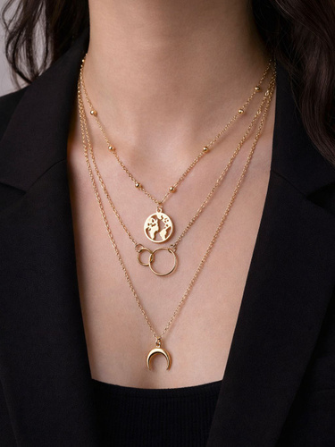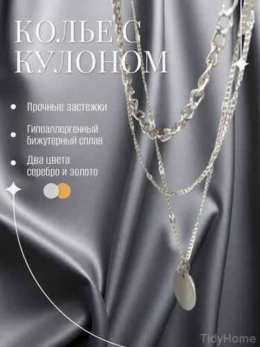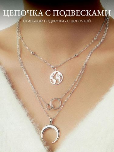 Цепочка на шею женская / многослойное колье с подвеской Луна, Земля, Круги / бижутерия женская под серебро / подарок маме, сестре, жене, подруге на 8 марта