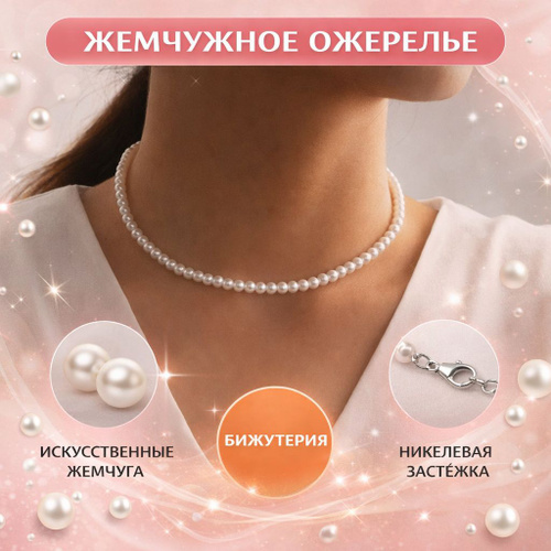 Ожерелье на шею женское бижутерия, Бусы из искусственного жемчуга
