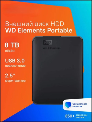 Эксклюзивный портативный HDD WD Elements 8 ТБ 2.5 дюйма в черном корпусе с USB 3.0