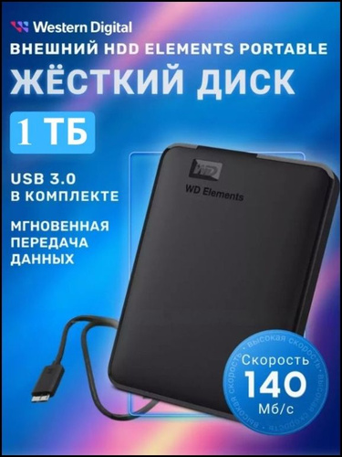 Эксклюзивный портативный HDD WD Elements 1 ТБ 2.5 дюйма USB 3.0 в черном корпусе