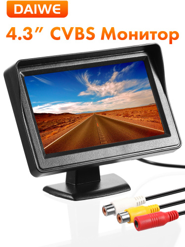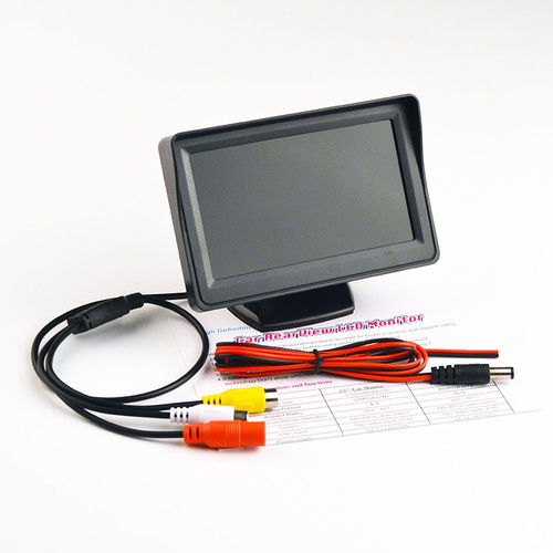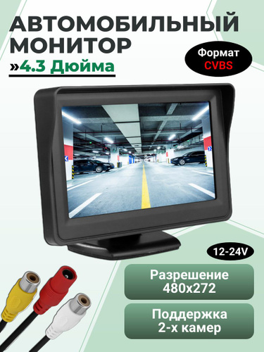 Монитор автомобильный 4.3 дюйма для камеры заднего и переднего вида (Поддержка формата CVBS, 2 видеовхода AV/RCA), На регулируемой ножке