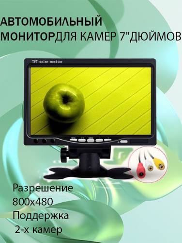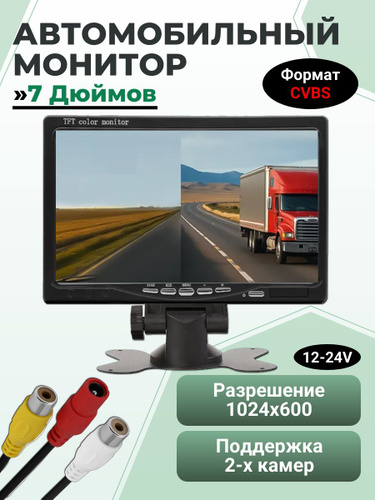 Монитор автомобильный 7 дюймов для камеры заднего и переднего вида (Поддержка формата CVBS, 2 видеовхода AV/RCA), На регулируемой ножке