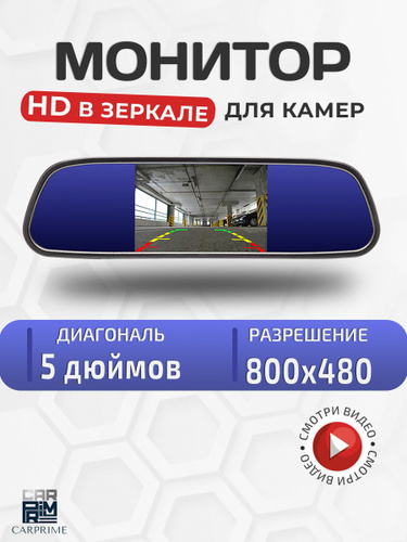 Монитор зеркало 5 дюймов CarPrime для камер заднего и переднего вида.