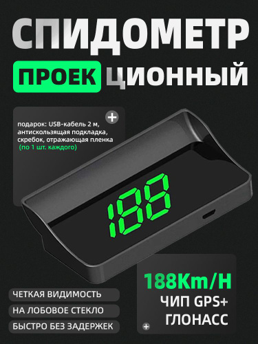 Проекционный спидометр на лобовое стекло HUD GPS для авто / HUD / проекция скорости на лобовое стекло