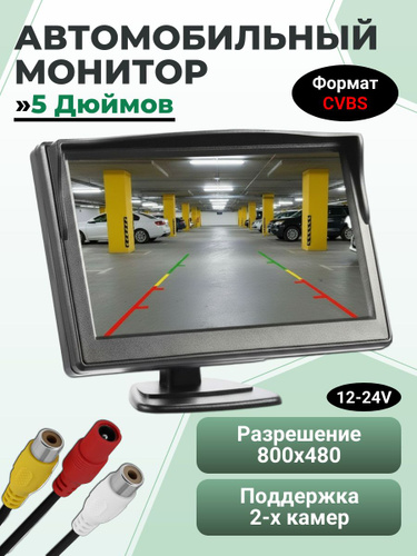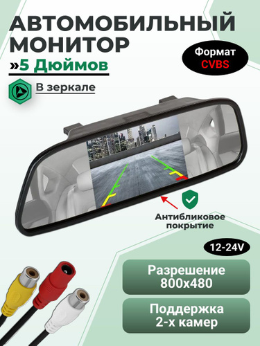 Монитор автомобильный 5 дюймов для камеры заднего и переднего вида (Поддержка формата CVBS, 2 видеовхода AV/RCA), В зеркале