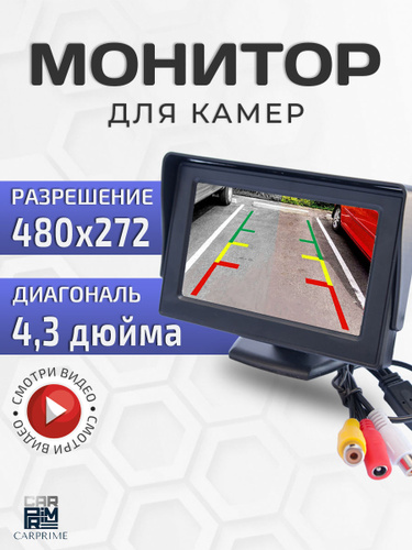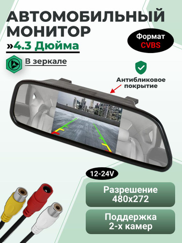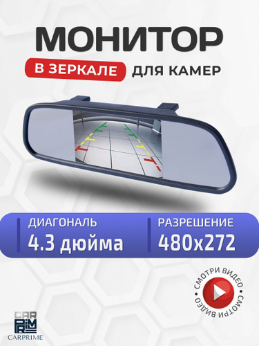 Монитор зеркало 4'3 дюйма CarPrime для камер заднего и переднего вида.