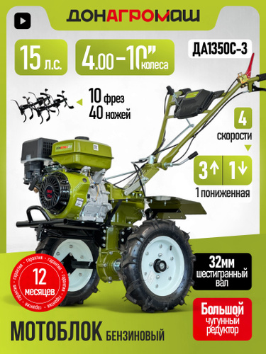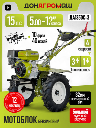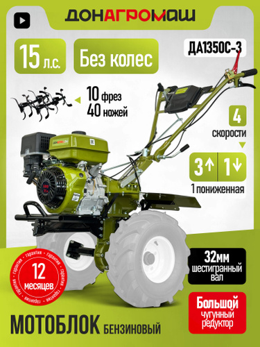 ДОНАГРОМАШ Мотоблок бензиновый редукторный ДА1350C-3 (15 л.с, 3 вперед / 1 назад, колеса 5-12)