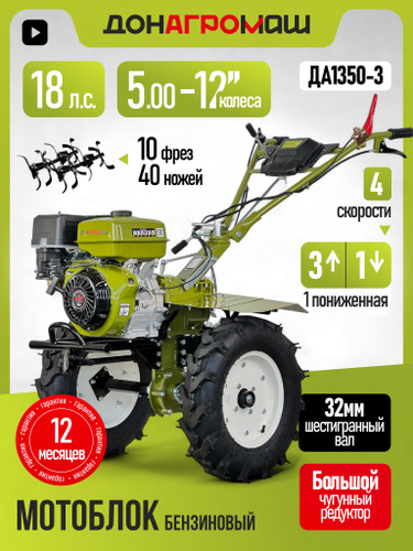 ДОНАГРОМАШ Мотоблок бензиновый редукторный ДА1350-3 (18 л.с, 3 вперед / 1 назад, колеса 4х10)