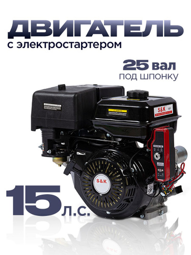 Двигатель для мотоблока с электростартером бензиновый на 15 л.с. S&K 190F 25 вал под шпонку