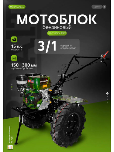 Мотоблок бензиновый BR-135GFPRO 18.5 л.с. колеса 5.00-12, 3 вперед/1 назад, чугунный редуктор