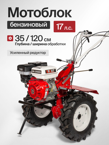 Мотоблок бензиновый BRAIT BR-135GE 17 л.с. с ВОМ вал S32, колеса 6.00-12, 2 вперед / 1 назад