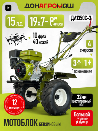 ДОНАГРОМАШ Мотоблок бензиновый редукторный ДА1350C-3 (15 л.с, 3 вперед / 1 назад, колеса 19x7-8)