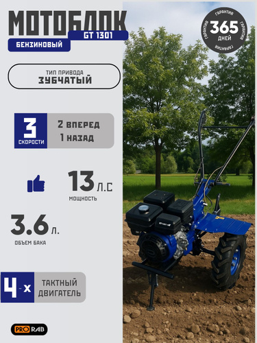 Мотоблок бензиновый, 13 л.с., дисковый привод, фреза 32 лопасти, Prorab
