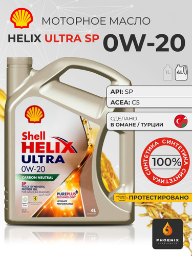 Shell Helix Ultra SP 0W-20 Масло моторное, Синтетическое, 4 л