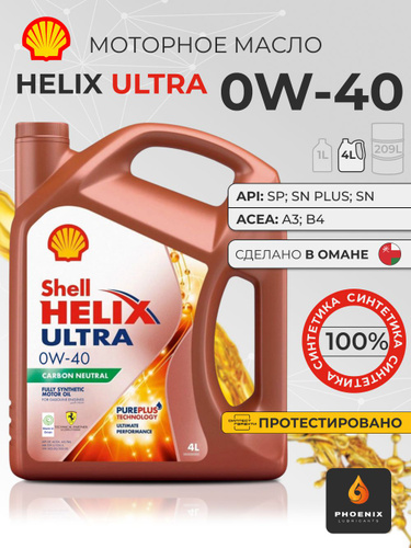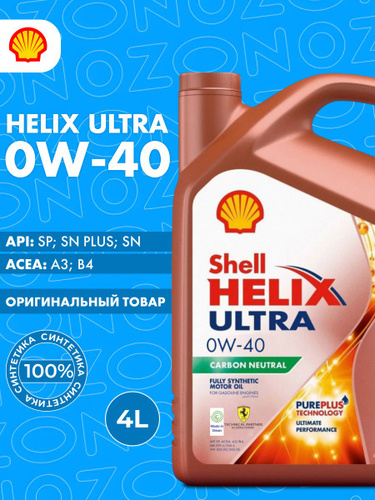 Shell HELIX ULTRA 0W-40 Масло моторное, Синтетическое, 4 л