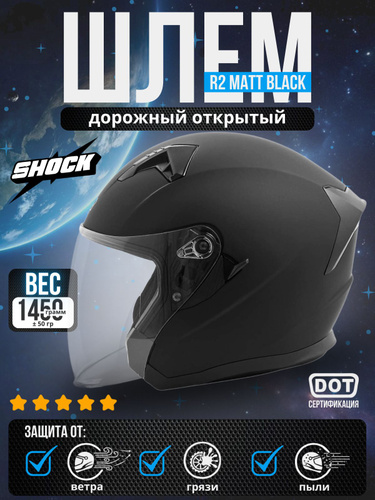 Шлем дорожный открытый SHOCK R2 MATT BLACK XL для мотоцикла, квадроцикла, питбайка, мопеда, скутера, снегохода