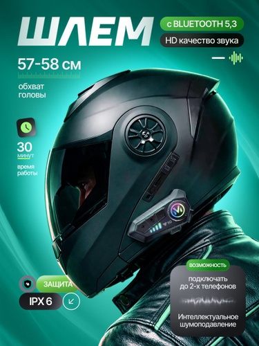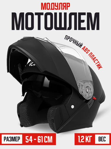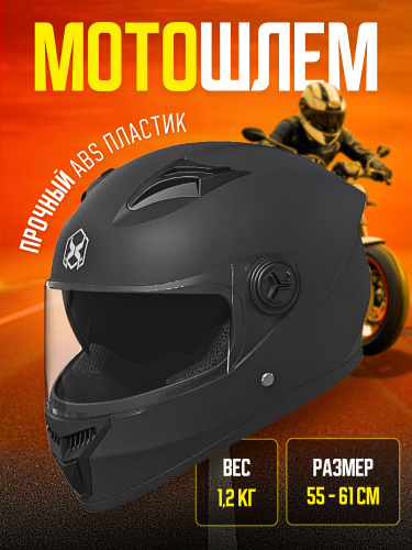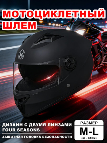 Мотошлем для мотоцикла, Комплексная защита, Подходит на окружность головы 57-60 см,черный