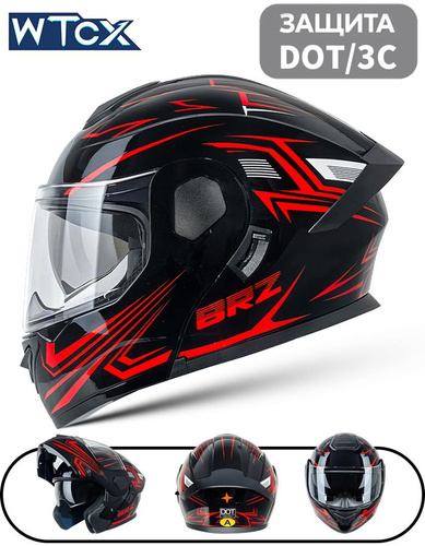 WTCX Мотошлем, цвет: черный, красный, размер: M